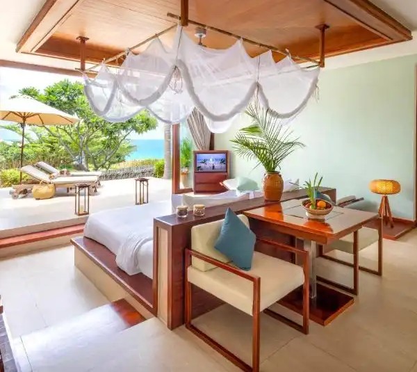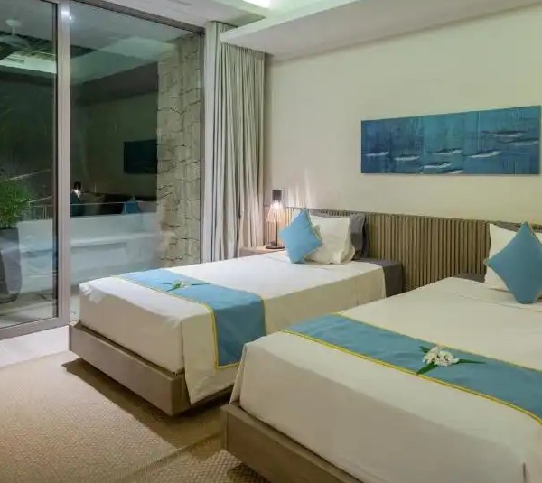 • Tone trắng – xanh biển, cây xanh, decor như resort mini