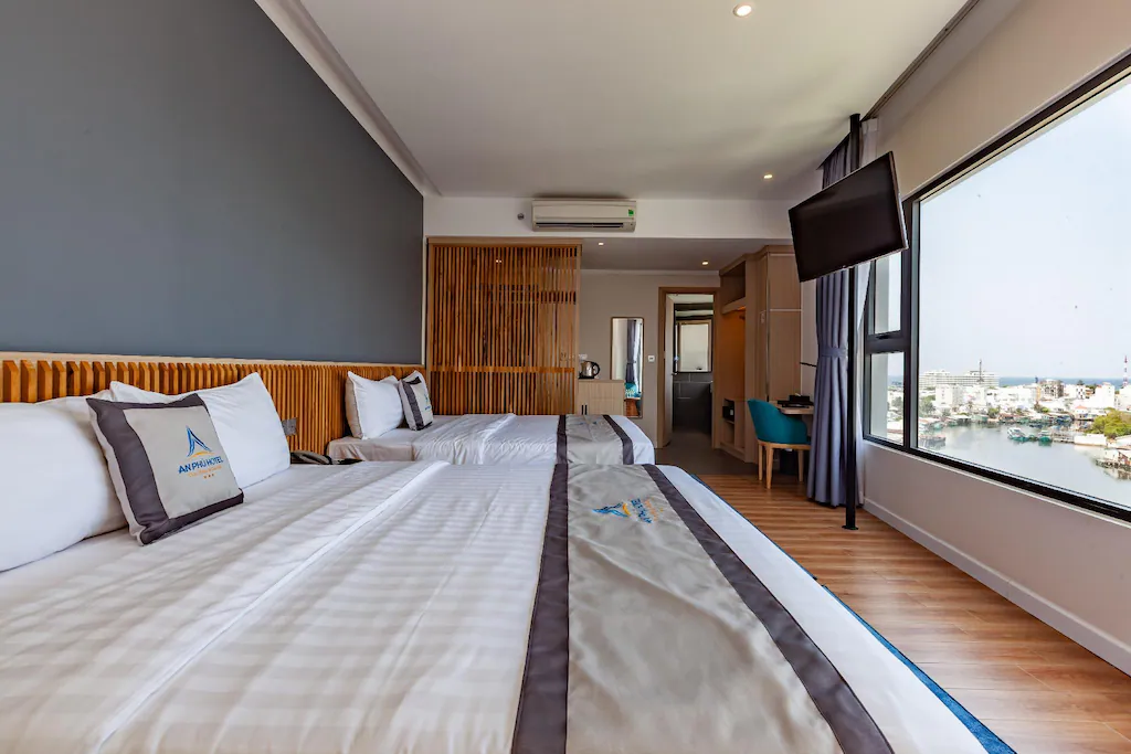 An Phu Hotel là một khách sạn 3.0 sao nằm tại Đảo Phú Quốc, Việt Nam. Với 68 phòng nghỉ, khách sạn này mang đến cho du khách một trải nghiệm thoải mái và sang trọng. Thời gian nhận phòng bắt đầu từ 02:00 PM và thời gian trả phòng là 12:00 PM, giúp du khách có thời gian linh hoạt trong việc sắp xếp lịch trình. Đối với chính sách về trẻ em, An Phu Hotel không cho phép trẻ em ở miễn phí. Tuy nhiên, có thể có các khoản phụ phí. Với dịch vụ chăm sóc khách hàng tận tâm, khách sạn này cam kết mang đến cho du khách một kỳ nghỉ đáng nhớ và thoải mái.