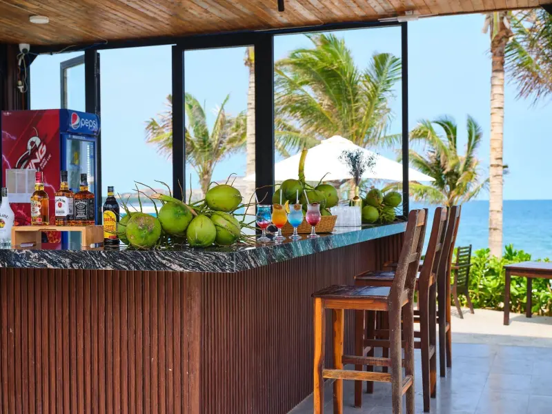 Thưởng thức hương vị ven biển tại các nhà hàng trong khu nghỉ, cùng với các loại cocktail thơm mát.