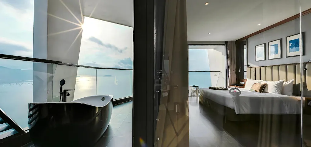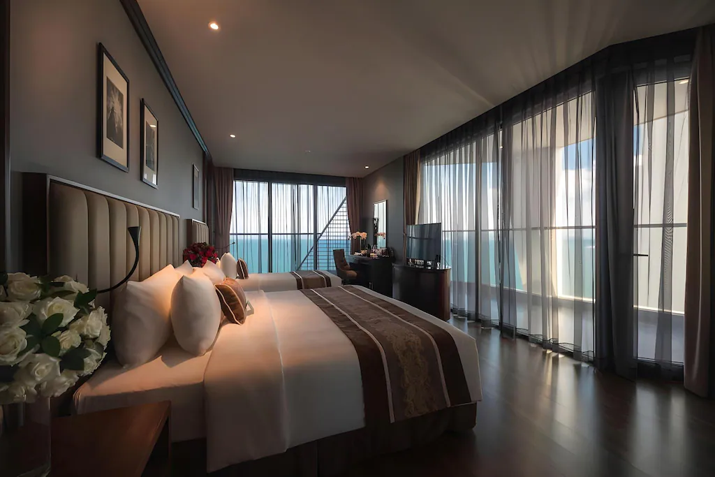 Khách sạn Royal Beach Boton Blue Hotel & Spa sở hữu 173 phòng được trải đều trong tòa nhà cao 27 tầng. Tất cả các phòng đều có ban công và được trang bị đầy đủ các tiện nghi như: Truyền hình cáp; Điện thoại gọi quốc tế; Két sắt; Tủ lạnh; Dụng cụ pha trà, cà phê; Kệ bàn, Sofa,…