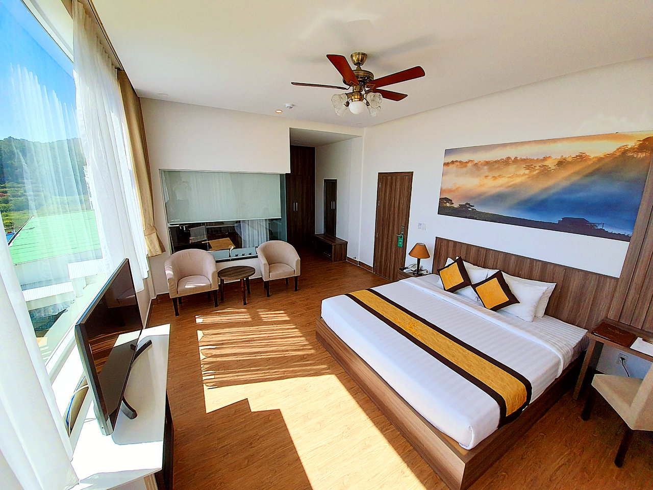 Nhà hàng ẩm thực: Resort có 01 nhà hàng, có tầm nhìn ra hồ Tuyền Lâm cùng ngọn đồi xanh mướt. Nhà hàng phục vụ ẩm thực Á – Âu. Thời gian hoạt động: 06:30 – 22:00. Khách hàng đặt phòng kèm bữa sáng sẽ thưởng thức bữa ăn từ 06:30-10:00.