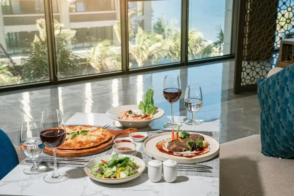 The Bay: Nhà hàng Bay có không gian rộng, nơi đây chuyên phục vụ đa dạng các món ăn theo ẩm thực Việt Nam và quốc tế. Khách đặt phòng kèm ăn sáng sẽ ăn ở nhà hàng này. Thời gian ăn sáng: 6:00 – 10:00. Ngoài ra, nhà hàng có phục vụ thực đơn gọi món hấp dẫn dành cho khách lưu trú tại đây. Thời gian hoạt động: 11:00 – 22:00