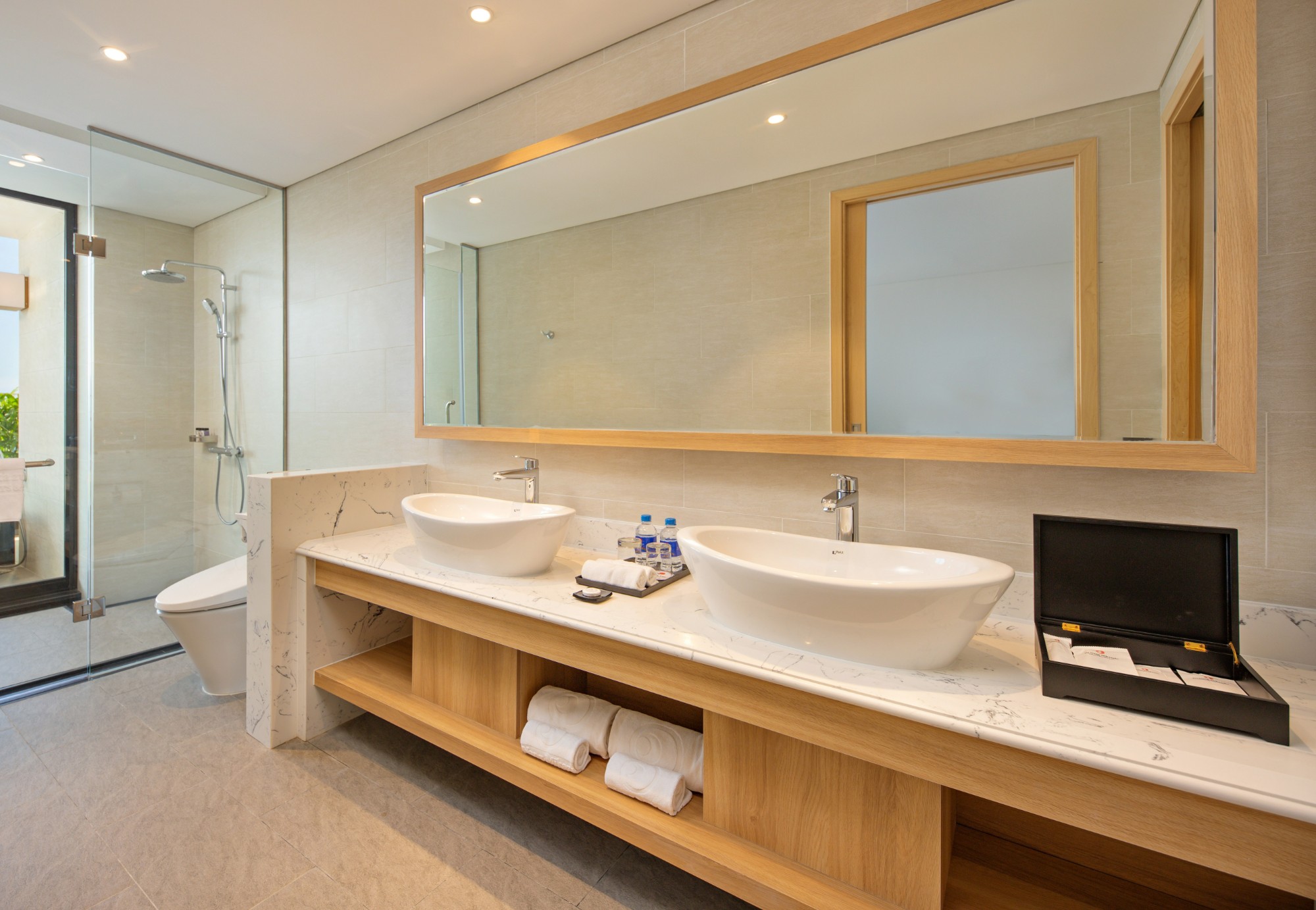 Mikazuki Japanese Resorts Da Nang sở hữu khu villa 12 căn với 48 phòng hướng vườn và khu khách sạn cao 22 tầng với 294 phòng, đặc biệt tất cả phòng ở khu khách sạn đều 100% hướng biển và có bồn tắm lộ thiên. Mỗi phòng đều được trang bị đầy đủ các tiện nghi cơ bản như máy điều hòa, tủ lạnh, tủ quần áo, bàn làm việc, wifi, truyền hình cáp/ vệ tinh, két sắt. Phòng tắm riêng đi kèm tiện nghi vòi sen, máy sấy tóc và đồ vệ sinh cá nhân miễn phí.