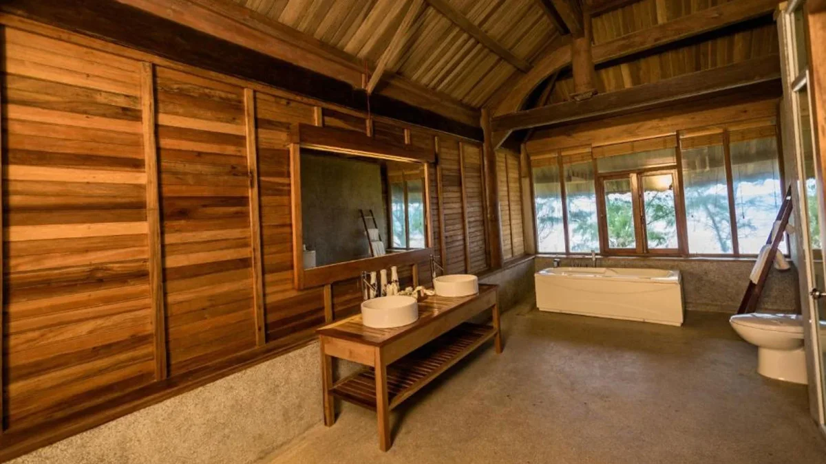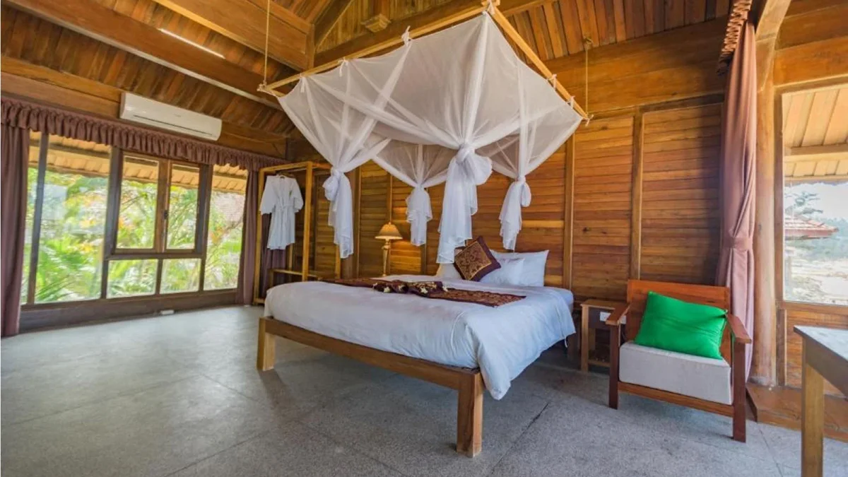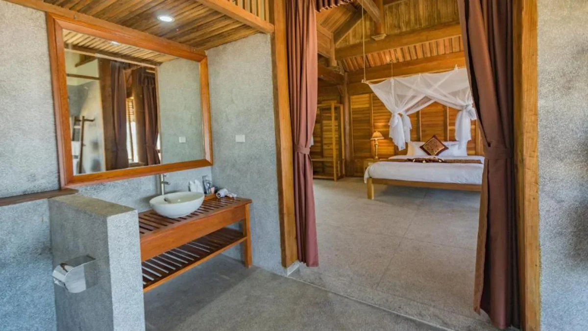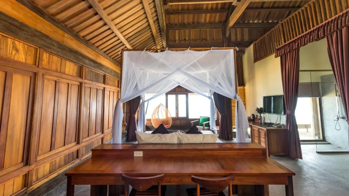 Khu biệt thự: Các biệt thự được xây dựng theo kiểu nhà sàn truyền thống, sử dụng chủ yếu vật liệu gỗ và đá, tạo cảm giác gần gũi và ấm cúng