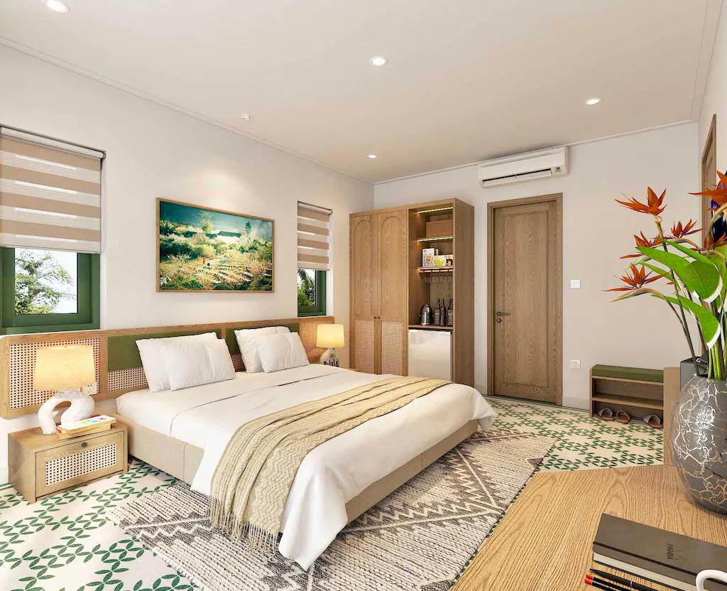 • Từng đường nét, từng món đồ nội thất đều hướng đến sự tối giản – tinh tế, đúng tinh thần của một nơi để tâm trí được nghỉ ngơi thật sự.