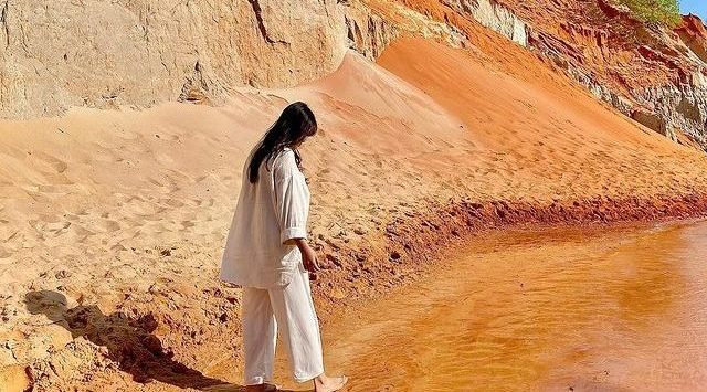 Quý khách tham quan Suối Tiên – tên gọi khác là Suối Hồng, dòng suối có 1 không 2 ở Việt Nam, bởi dòng nước nhuốm màu của cát nên quanh năm có màu đỏ cam rực rỡ. Ngay bên cạnh là những khối nhũ cát nhấp nhô. Đây thực chất là 1 khe nước nhỏ, nằm khuất sau đồi cát.