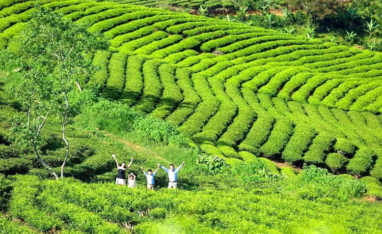 Sau đó, check in Đồi Chè Cầu Đất – Cánh Đồng Điện Gió: rộng khoảng hơn 200 hecta với một màu xanh bát ngát trải dài xa tít tắp xen giữa đồi thông như những nốt nhạc trầm bổng, hòa chung bản tình ca của núi rừng cao nguyên, với không gian yên tĩnh hòa quyện với khí hậu trong lành cùng với hương gió vấn vương vị thơm thơm chát chát của nhưng cây chè. Quý khách lang thang chụp hình “sống ảo” và hòa mình vào cùng thiên nhiên với những đồi trà xanh ngắt trải dài mênh mông dưới bầu trời trong xanh.