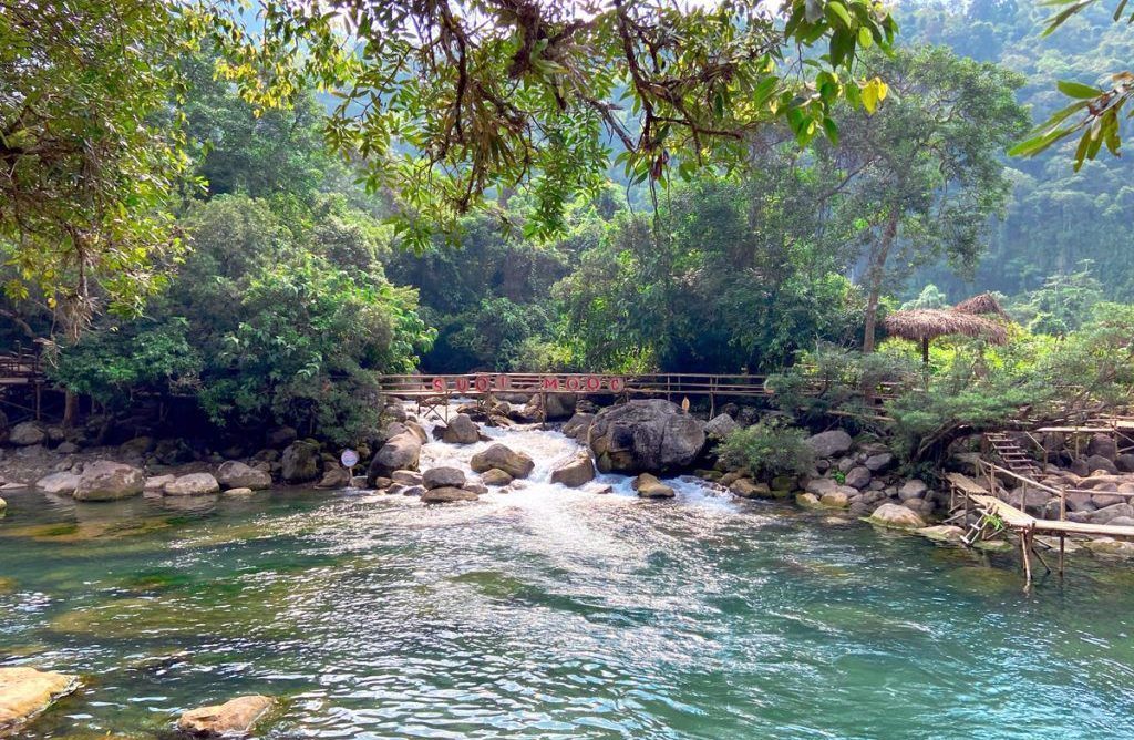 nghiệm tắm suối Moọc và chèo thuyền kayka trong không gian vô cùng trong lành và mát mẻ