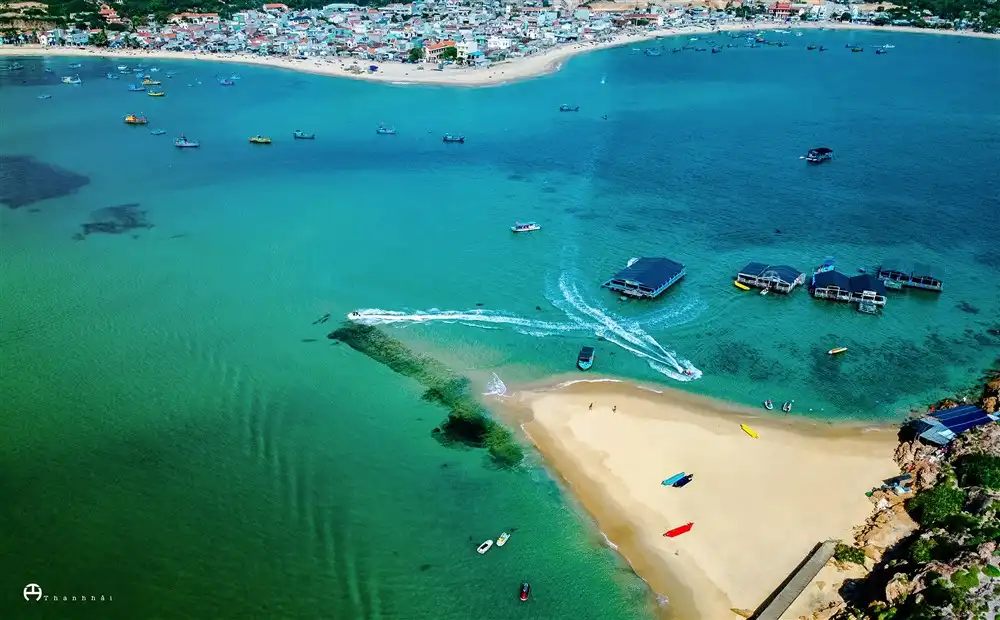 Quý khách thoải mái khám phá bãi cát dài mịn, khung cảnh hoang sơ đầy quyến rũ, đặc biệt được chấm phá bằng những công trình đặc sắc như Cầu Yến, Cầu Trái Tim, Kỳ Co Resort,… và những hang đá, suối nước đẹp đến bất ngờ.