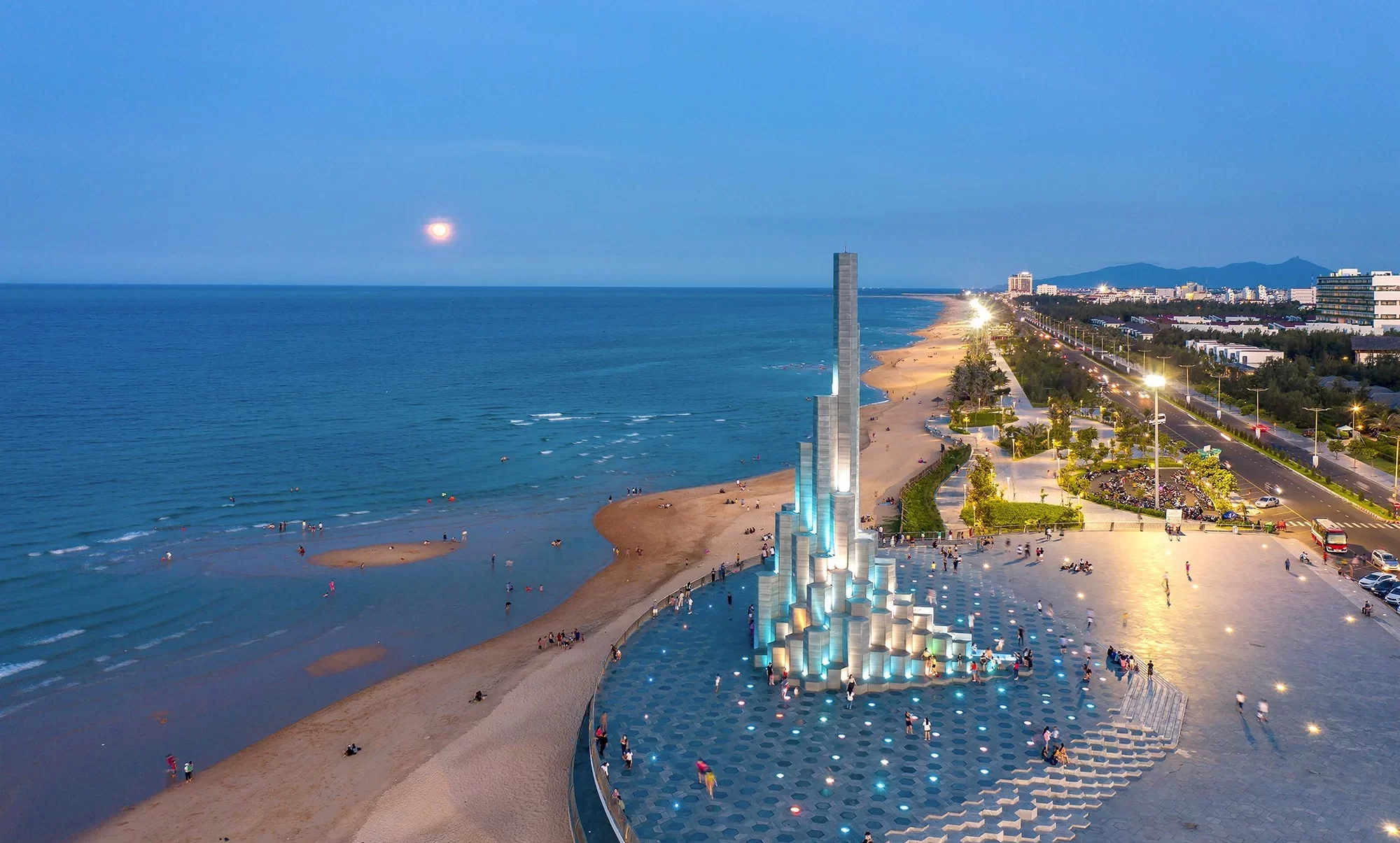 Xe đưa đoàn đi ngoạn cảnh một vòng thành phố Quy Nhơn, đi qua Cầu Thị Nại – cầu vượt biển dài nhất Việt Nam nối TP.Quy Nhơn với khu kinh tế Nhơn Hội và bán đảo Phương Mai.