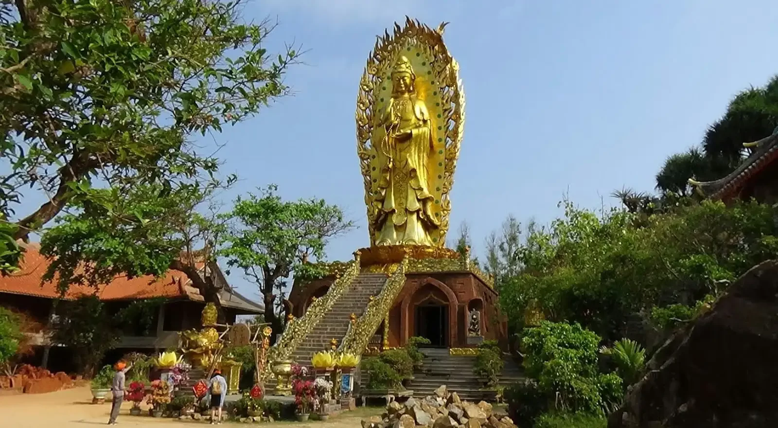 Qúy khách tiếp tục viếng Tịnh xá Ngọc Hòa – Chiêm ngưỡng pho tượng Phật đôi Quan thế Âm cao nhất Việt Nam 30m.