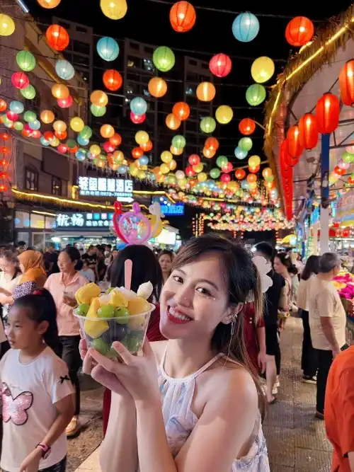 Quý khách tự do khám phá vẻ đẹp thành phố Mông Tự về đêm.