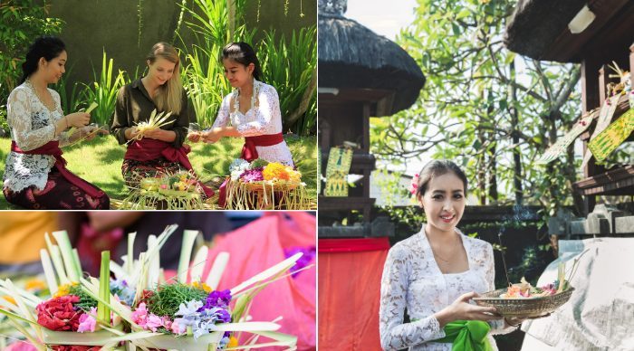 • Tự tay làm những chiếc Canang Sari – đây là những bát hoa để dâng đền, những bát hoa này đóng vai trò rất quan trọng trong đạo Hindu giáo.