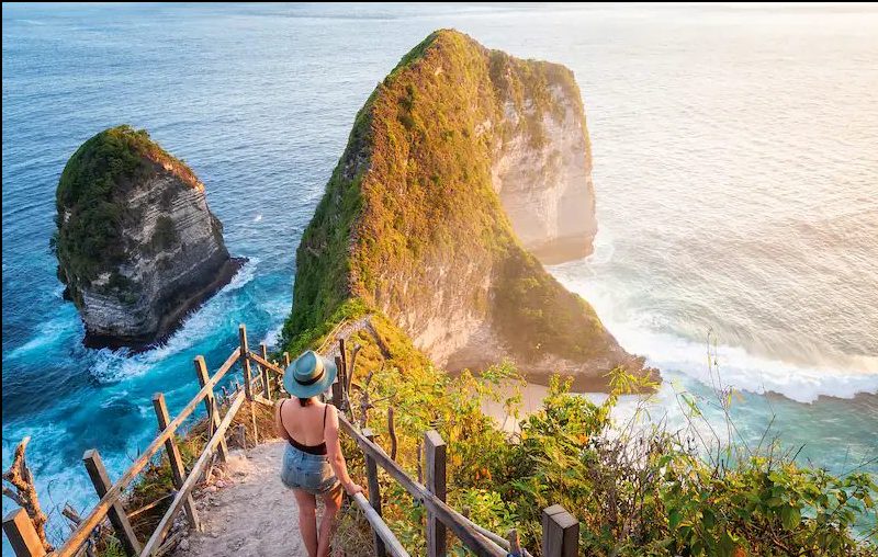 • Tham quan Kelingking Beach – “Sống lưng khủng long” nổi tiếng trên các trang mạng xã hội hay còn gọi là “bãi biển T-Rex” nó có hình dạng giống như đầu khủng long bạo chúa T- Rex bởi mỏm núi đá vôi nhô ra ngoài.