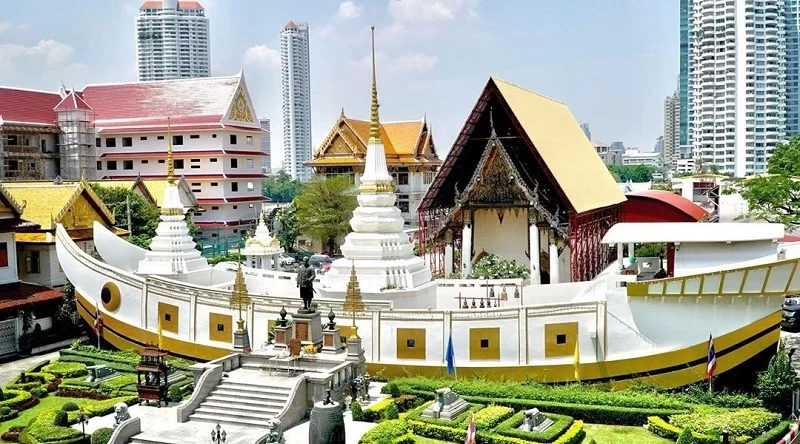 Chùa Thuyền – Wat Yannawa: Hình dáng chùa được xây dựng theo kiểu kiến trúc hình dáng con thuyền của người Trung Hoa cùng với kiến trúc Thái là các mái cao vút mang đậm phong cách thời Ayuthaya. Nơi đây được biết tới là ngôi chùa còn lưu giữ nhiều xá lợi nhất. Điều các Phật tử tới đây thỏa lòng nhất có lẽ là xin tịnh về một viên xá lợi để cầu bình an và thể hiện lòng thành kính của mình.