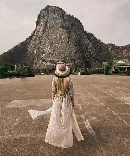 Khao Chee Chan – Trân Bảo Phật Sơn: Tượng Phật Thích Ca Mâu Ni đang ngồi thiền được tạc trên một vách núi giữa trời. Sự độc đáo của bức tượng Phật lớn này là được khắc nổi bằng vàng ròng 24 kara, cao 130 m, rộng hơn 70m, được xây dựng vào năm 1996, nhân dịp Quốc vương RaMa IX trị vì vương quốc Thái Lan được 50 năm.